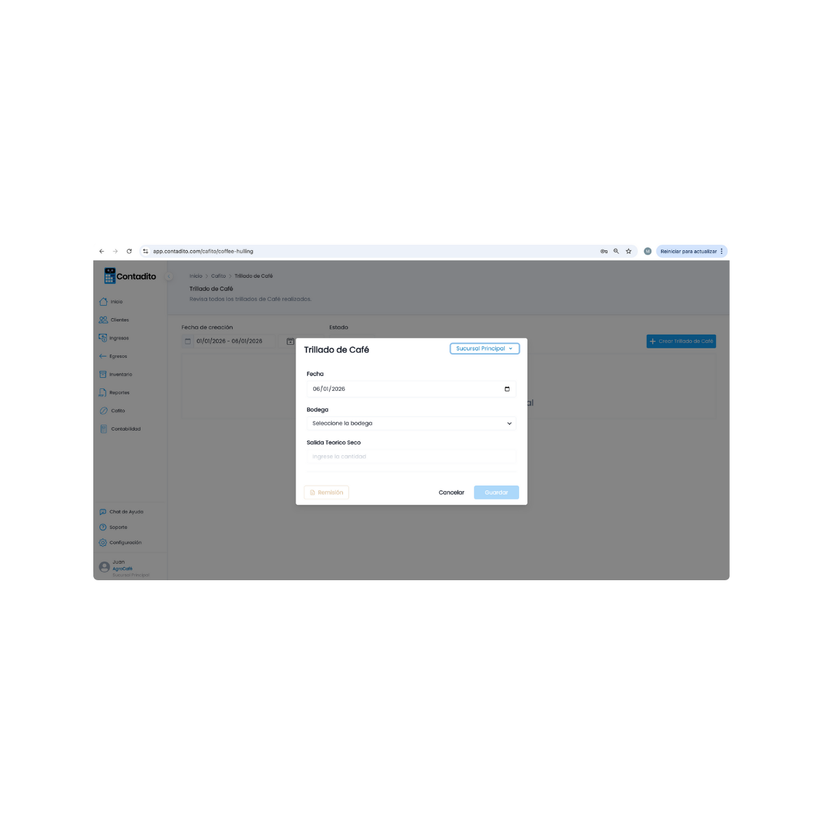 Automatizamos el registro del proceso de trillado de café en inventario para transformar el teórico seco a grano oro.